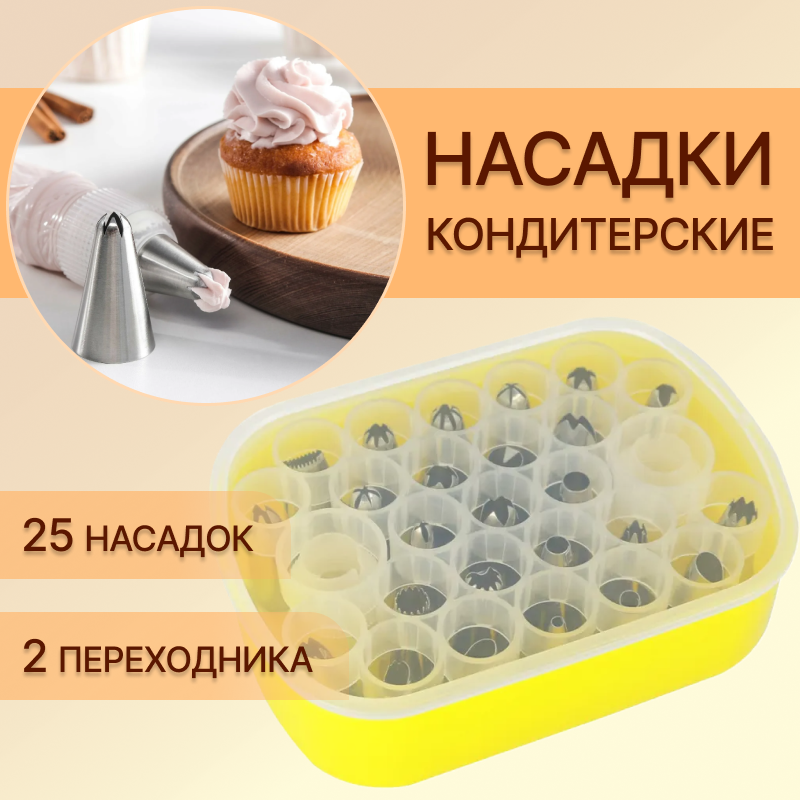 Насадки для кондитерского мешка, 25 штук (wf-27 желтый) / набор для декора тортов и выпечки с кулинарными адаптерами интересное: