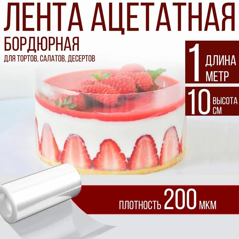 Лента ацетатная бордюрная для тортов 200 мкм, 100х10 см., 1 метр интересное: