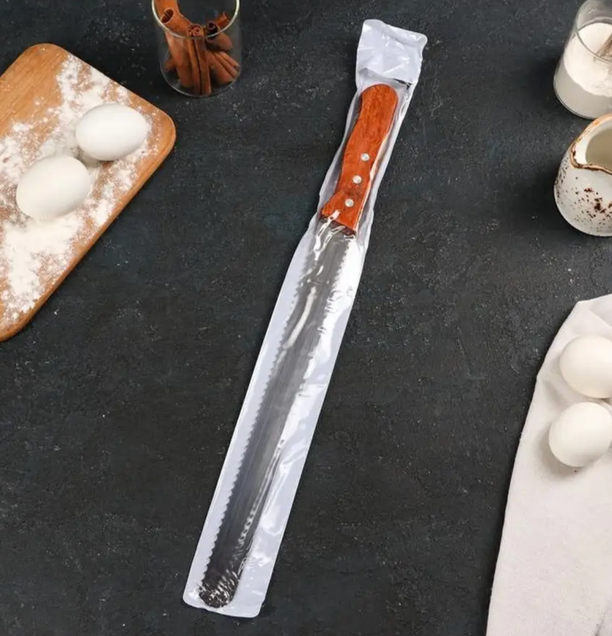 Нож для бисквита крупные зубцы, ручка дерево, рабочая поверхность 30 см интересное: