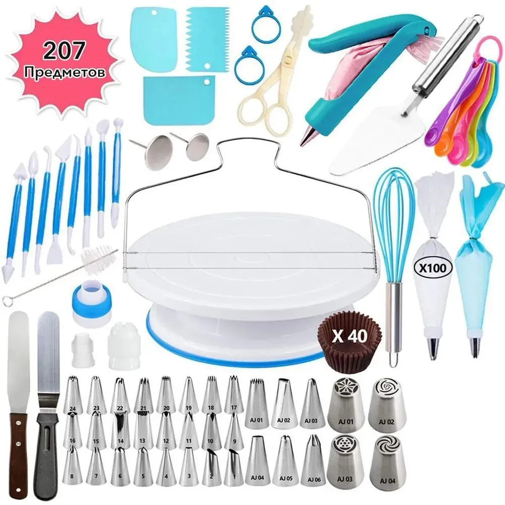Кондитерский набор 207 предметов/ Набор для выпечки/ Набор для кондитера/ Набор инструментов для украшения тортов интересное: