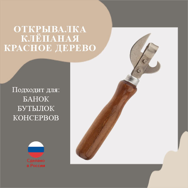 Консервный нож деревянная ручка лакированная, клепаная, металл - 1 шт