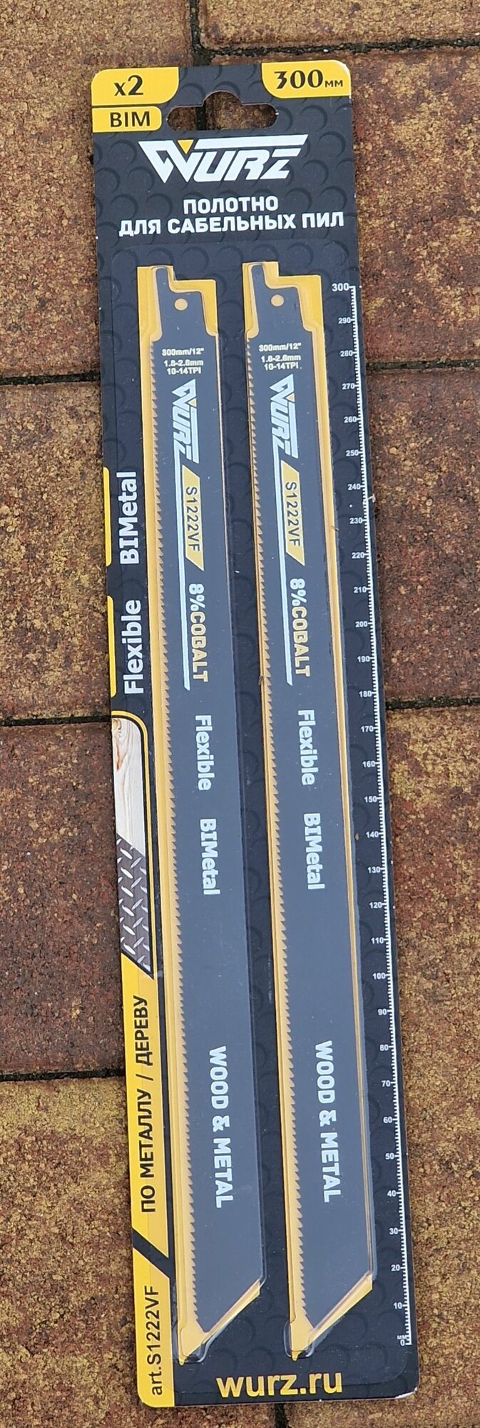 Полотно для сабельных пил по металлу 2шт 300*19*0,9мм 8% кобальт WURZ S1222VF интересное: