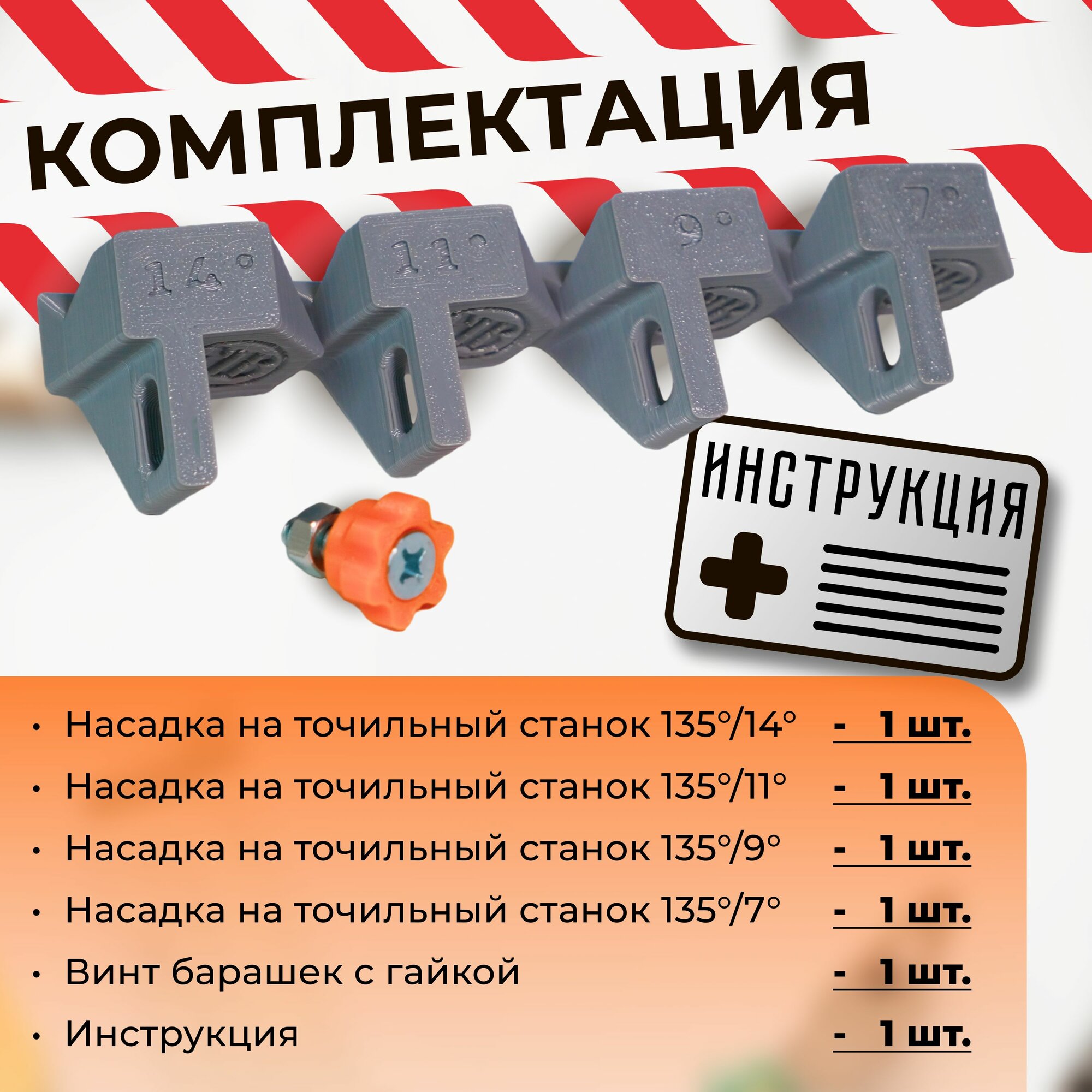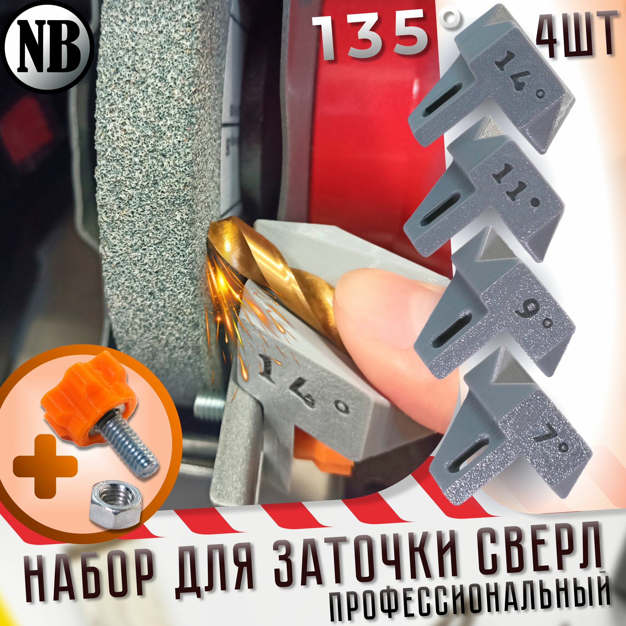 Насадка для заточки сверл, набор профессиональный 118° на 14°, 11°, 9°, 7° задние углы, с винтом, на точильный станок