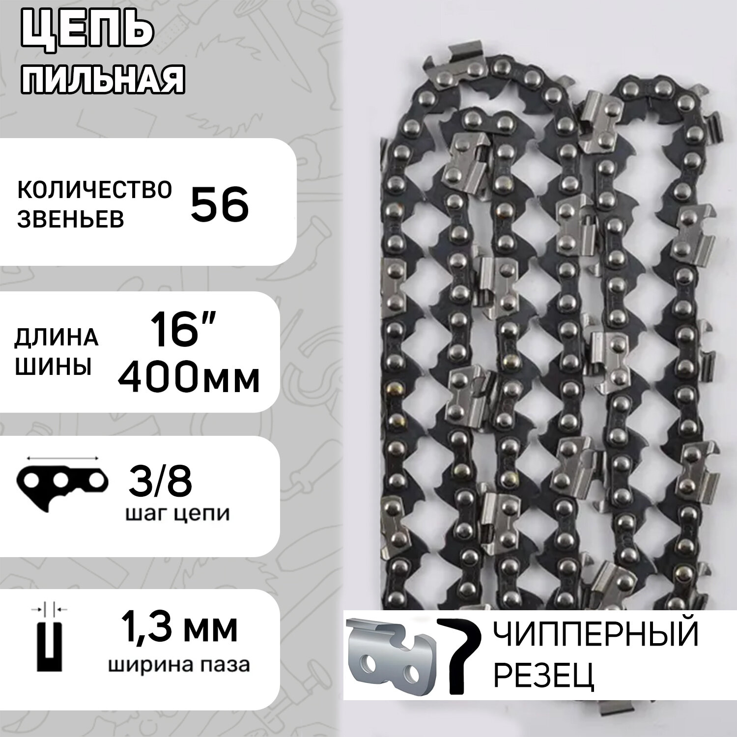 Цепь пильная 3/8, 1,3mm, 56зв, "серп", под шину 16 (40см) для Partner 350-401 "LINK" (mod.B) интересное: