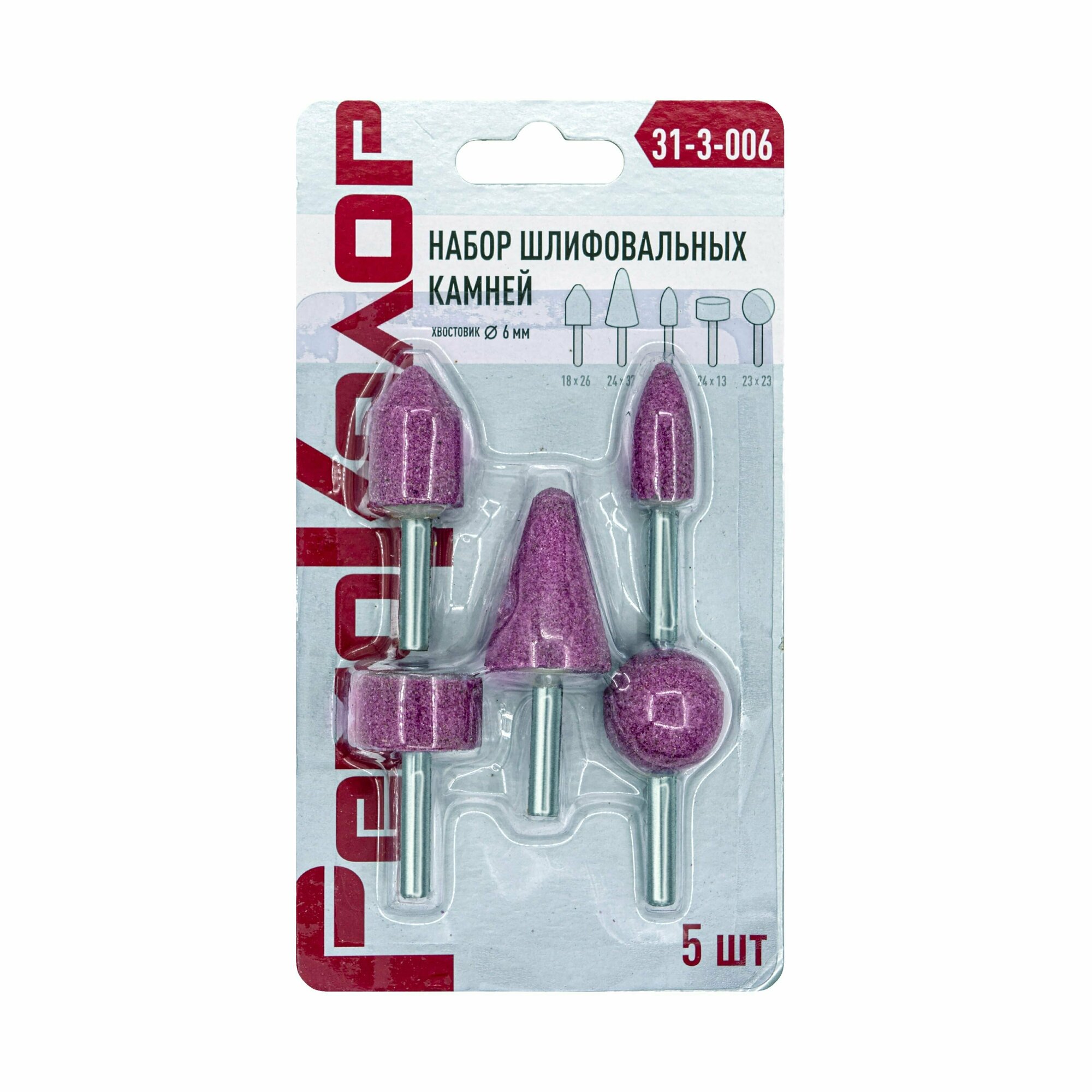 Купить Набор шлифовальных камней оксид алюминия, хвостовик 6мм, 5шт, РемоКолор