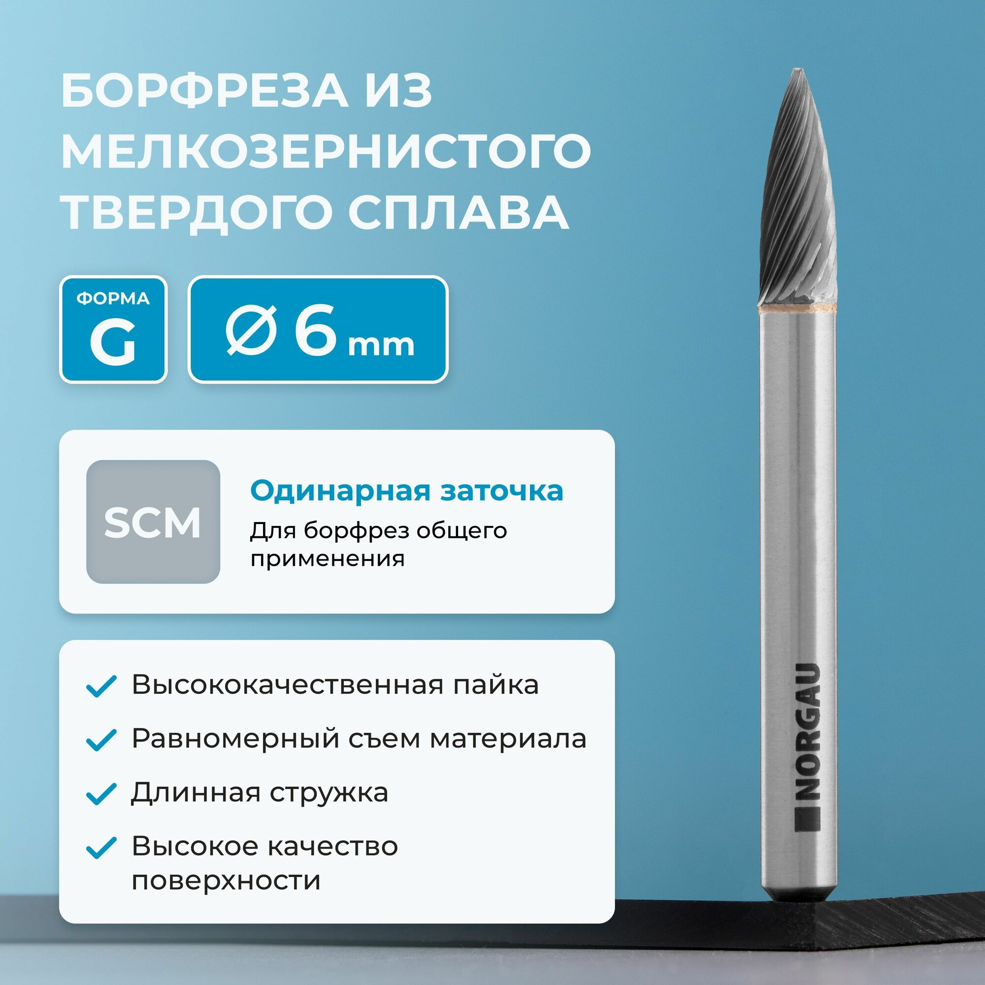 Купить Борфреза твердосплавная NORGAU Industrial параболическая 6 мм, форма G, SCM