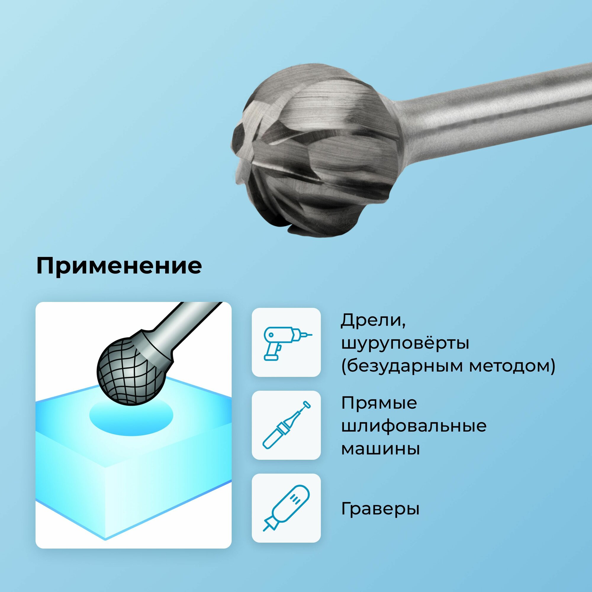 Борфреза твердосплавная NORGAU Industrial сферическая 6.3 мм, форма D, DCM