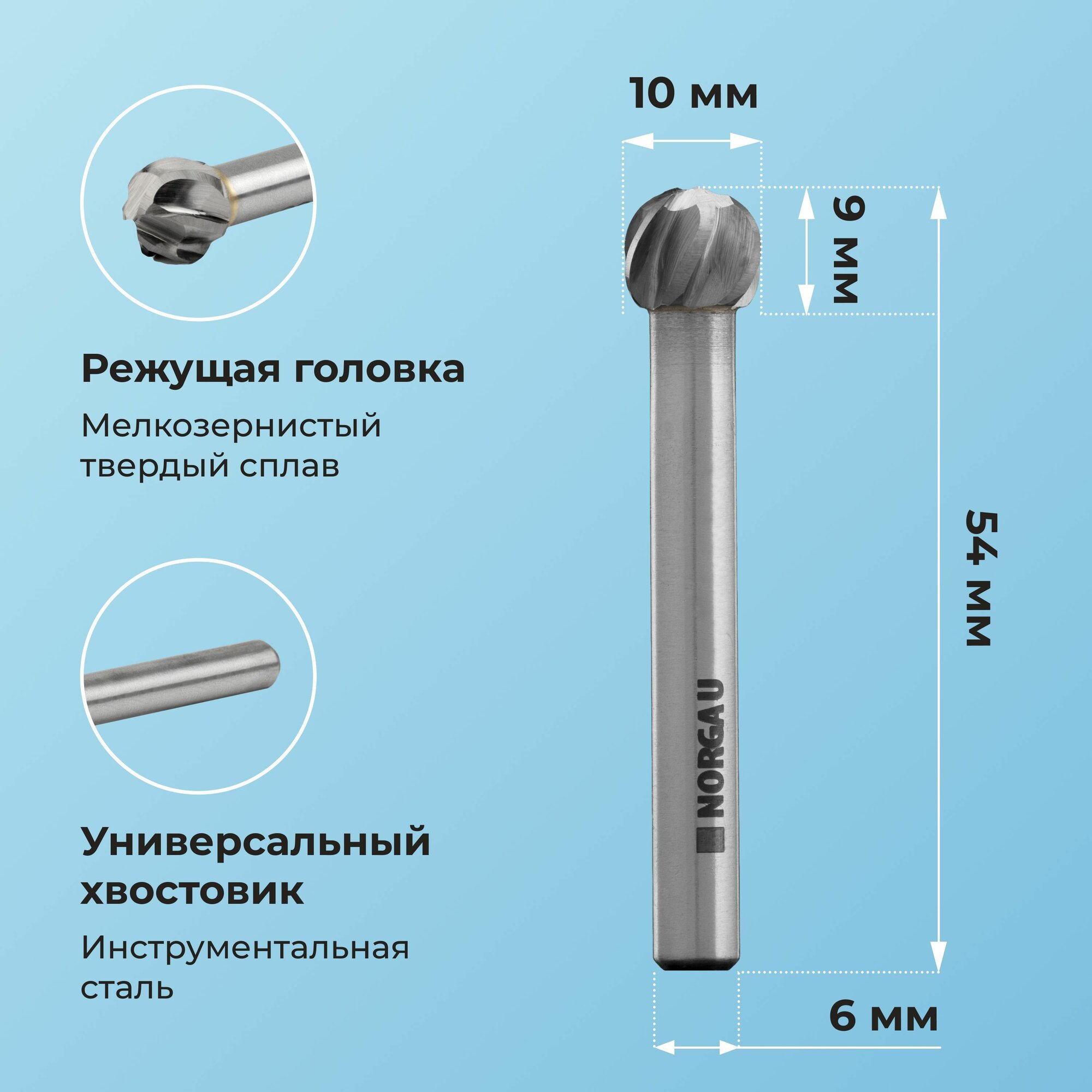 Купить Борфреза твердосплавная по алюминию NORGAU Industrial сферическая 10 мм, форма D, ALU