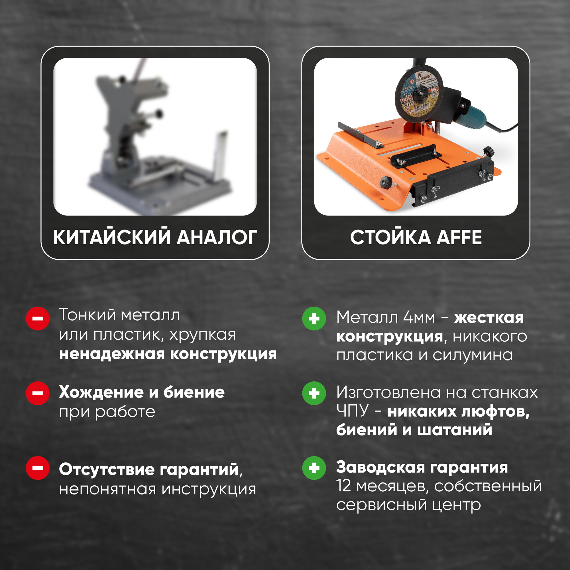Ниже Вы можете прочитать отзывы на Стойка для УШМ болгарки Affe, ознакомится с подробными характеристиками, посмотреть интересные обзоры и фотографии на Стойка для УШМ болгарки Affe.