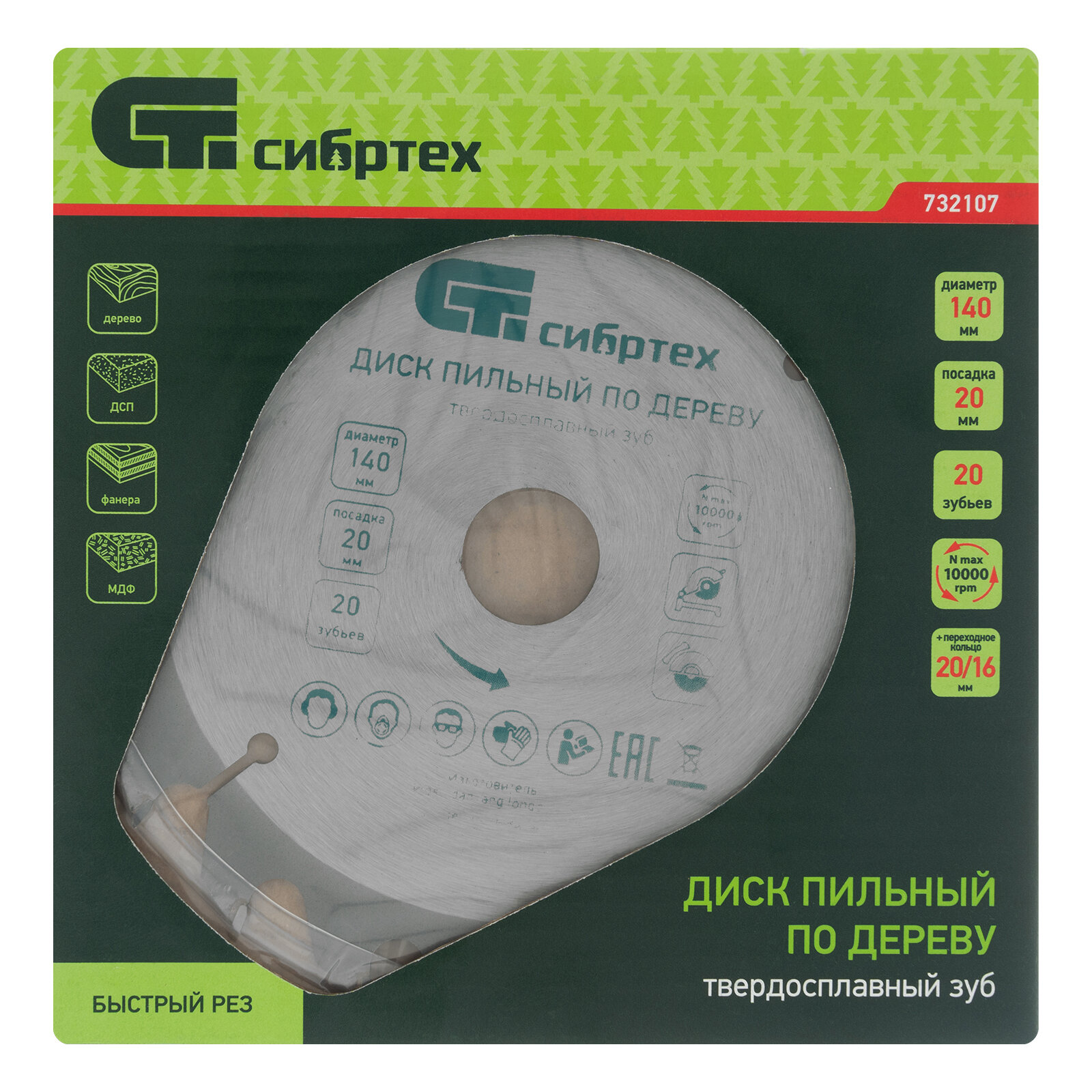 Пильный диск по дереву Сибртех ф140 х 20 мм, 20 зубьев + кольцо 20/16 732107 интересное: