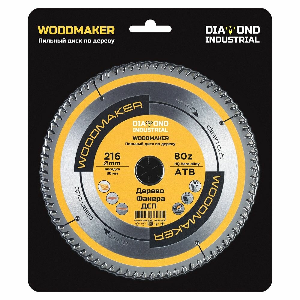 Diamond Industrial Диск пильный по дереву 216x30 мм Z=80 ATB WoodMaker DIDD216Z80