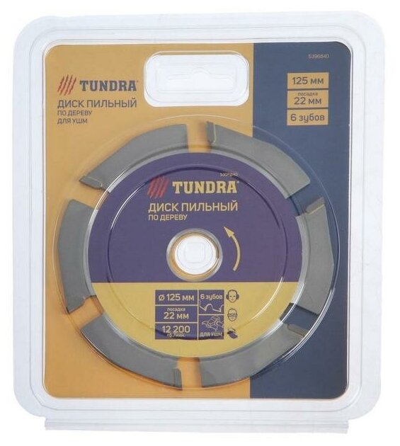 Диск пильный для УШМ тундра, для быстрой и плавной обработки дерева, 125 х 22 мм, 6 зубов