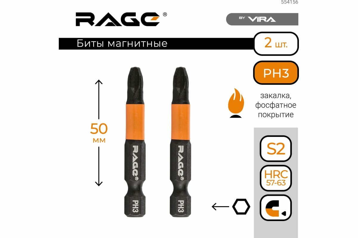 Биты магнитные S2 PH3 x 50 мм 2 шт RAGE by VIRA интересное: