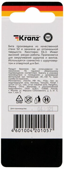 Бита износостойкая шестигранная для шуруповерта KRANZ с магнитным наконечником HEX4х50 мм, 2 штуки интересное: