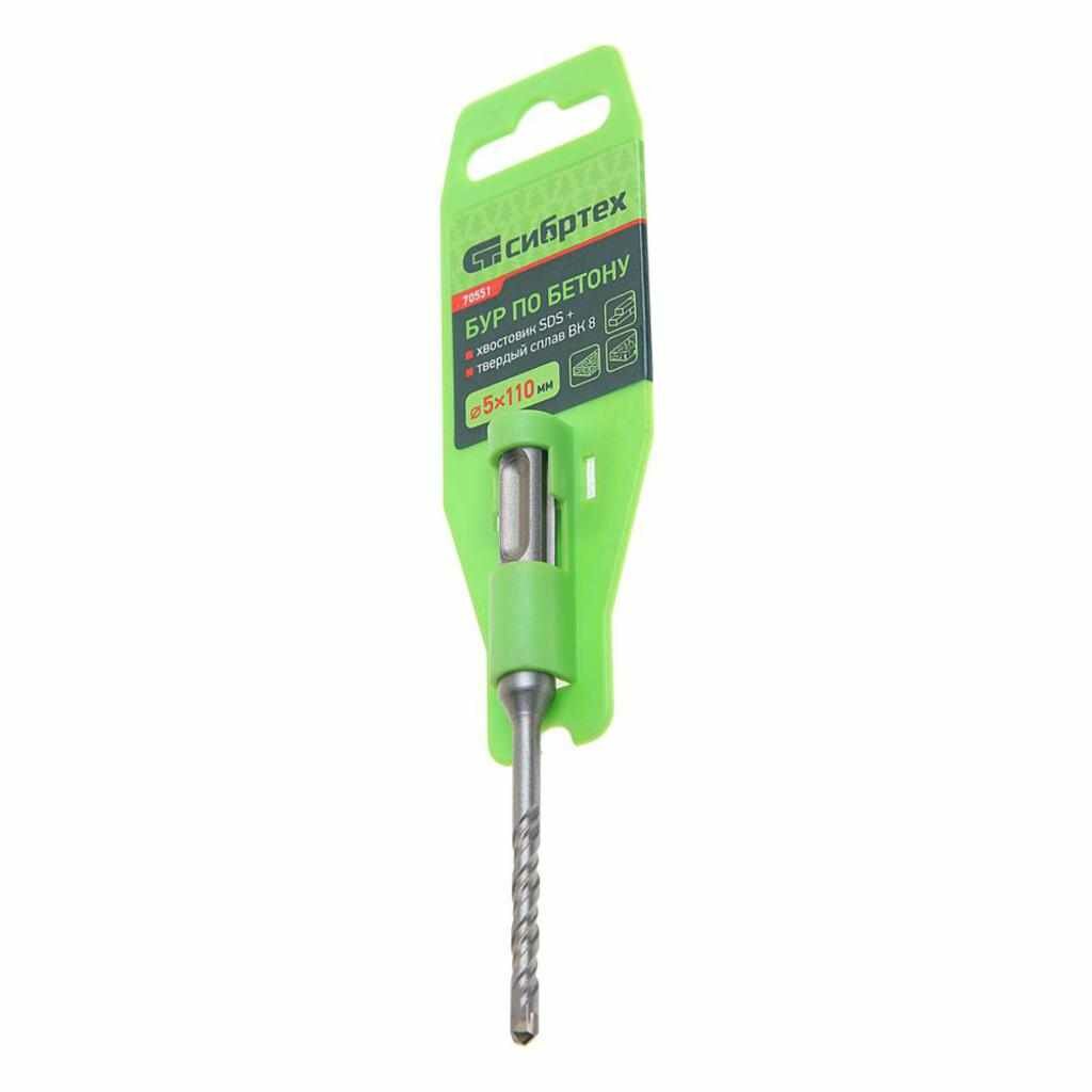 Бур по бетону, 5 x 110 мм, SDS Plus Сибртех, 70551