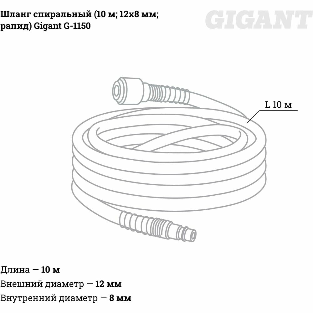 Шланг спиральный (10 м; 12х8 мм; рапид) Gigant G-1150