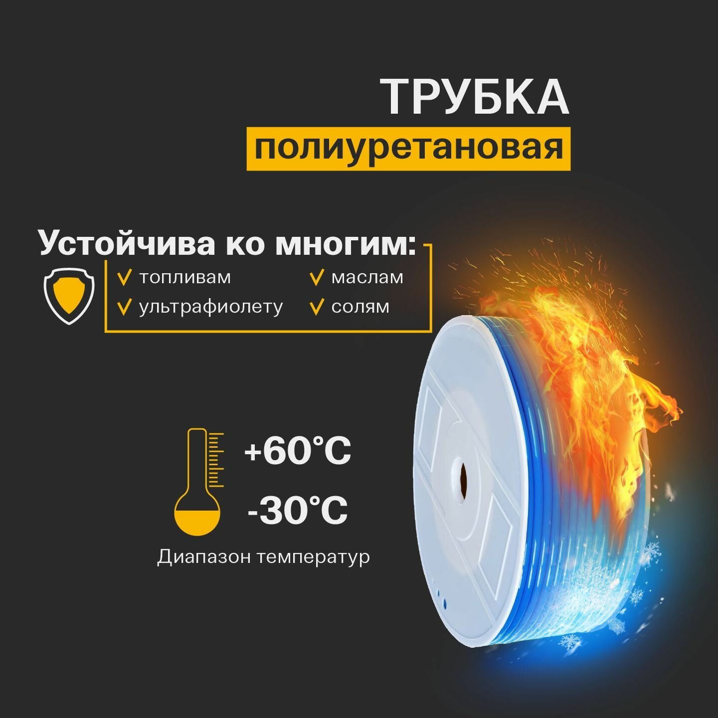 Трубка пневматическая полиуретановая (PU) 10 x 6,5 мм 30 метров