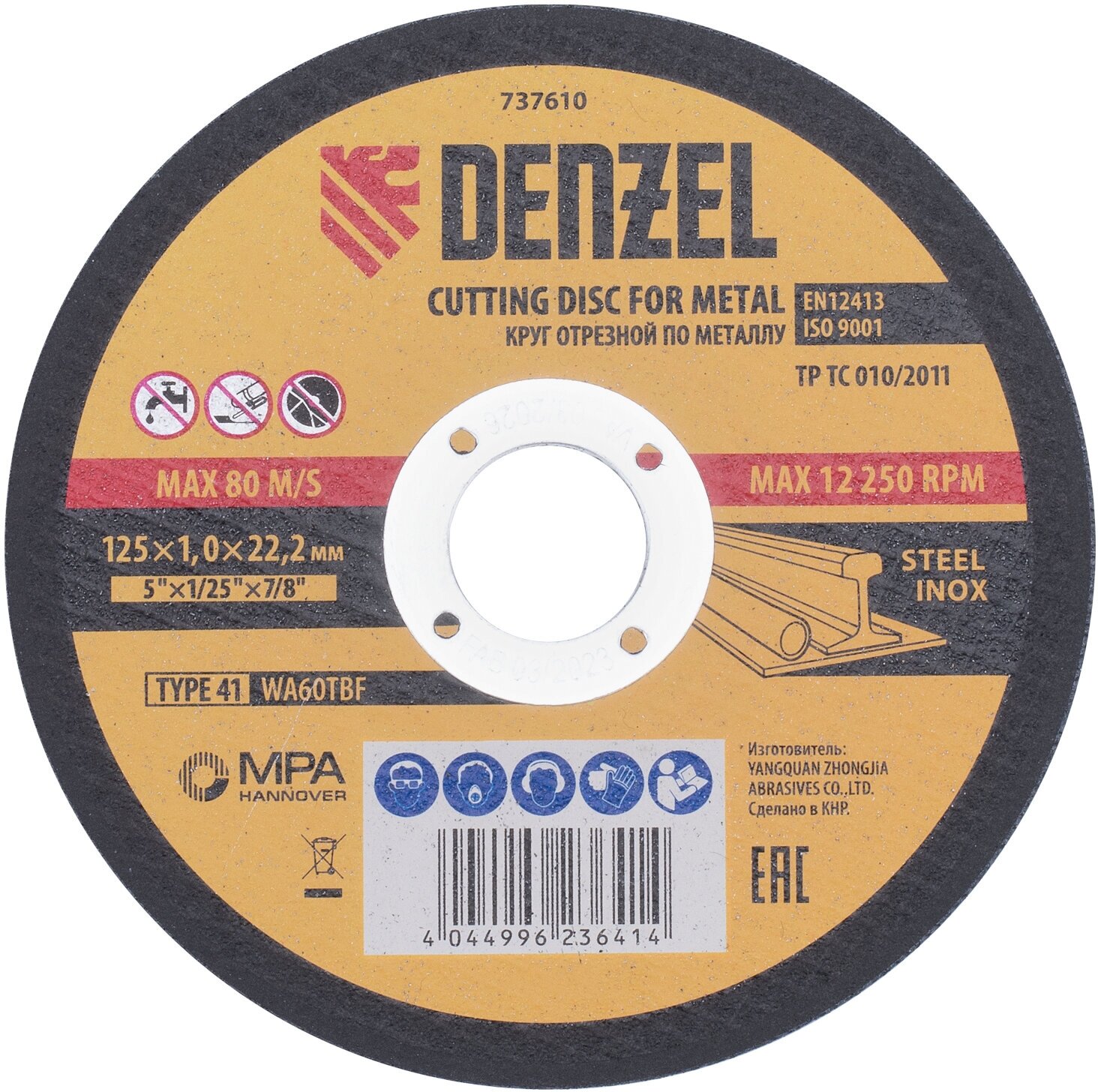 Купить Круг отрезной по металлу Denzel, 10 штук, 125 х 1.0 х 22.2 мм, WA60TBF, в металлической банке, 737610
