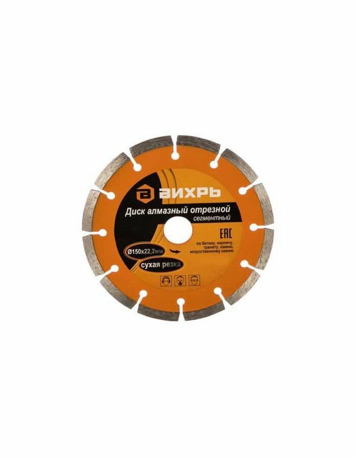Диск алмазный 150х22,2мм стандарт //отрезной, сегментный, сухая резка вихрь