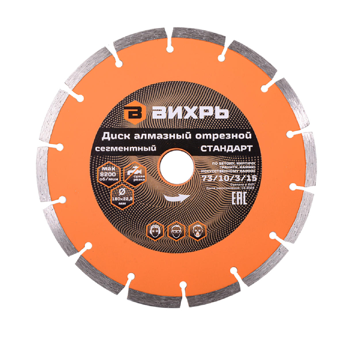 | Дополнительная информация | Диск алмазный сегментный отрезной 230 х 22,2 мм «сухая резка» Вихрь СТАНДАРТ алмазный диск для болгарки (УШМ), для штробореза 73/10/3/16 |