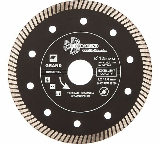 Купить Диск алмазный отрезной Турбо ультратонкий Grand hot press (125х22.23 мм) TRIO-DIAMOND 1 шт