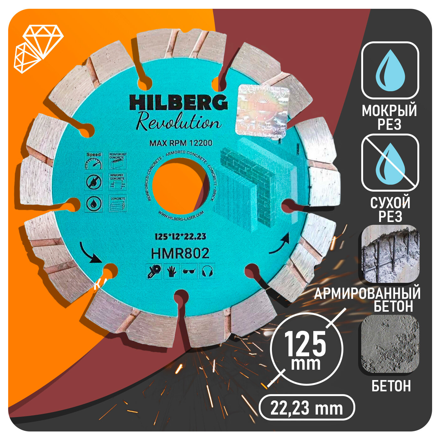 Диск алмазный Hilberg 125*22,23*12 Revolution HMR802 HMR802 . интересное: