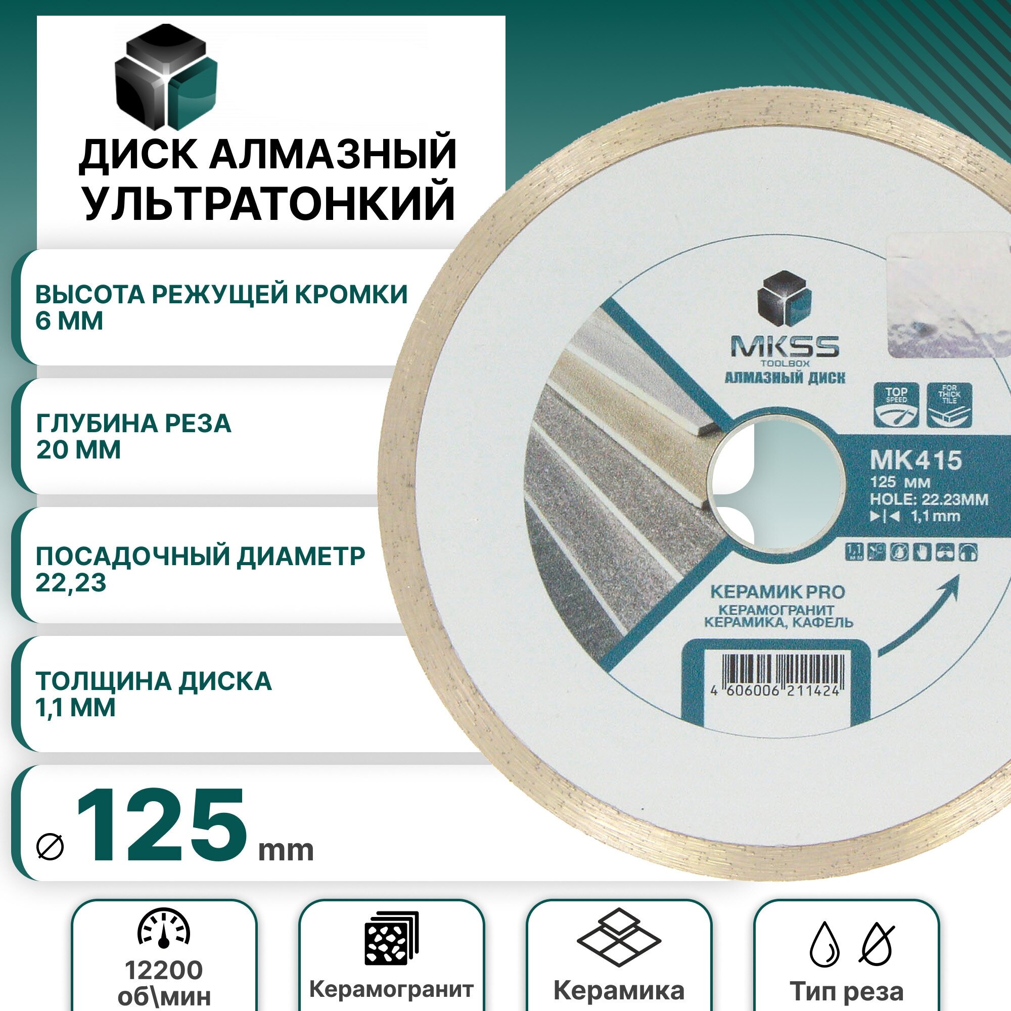 Диск алмазный MKSS MK415 по керамике и керамограниту супертонкий 125*1,1*22.23 интересное: