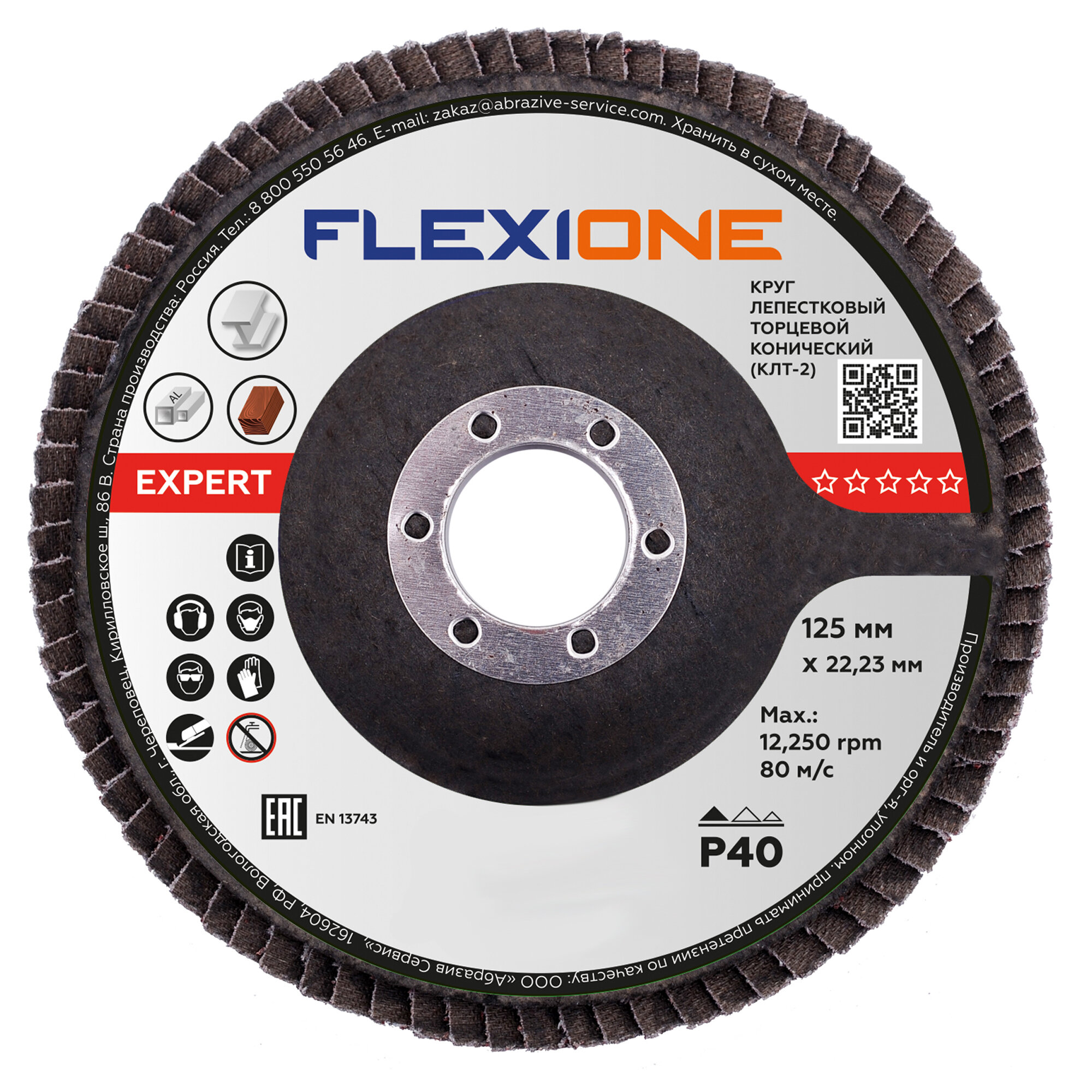 | Дополнительная информация | Круг лепестковый FLEXIONE Expert конический 125х22мм Р40 |