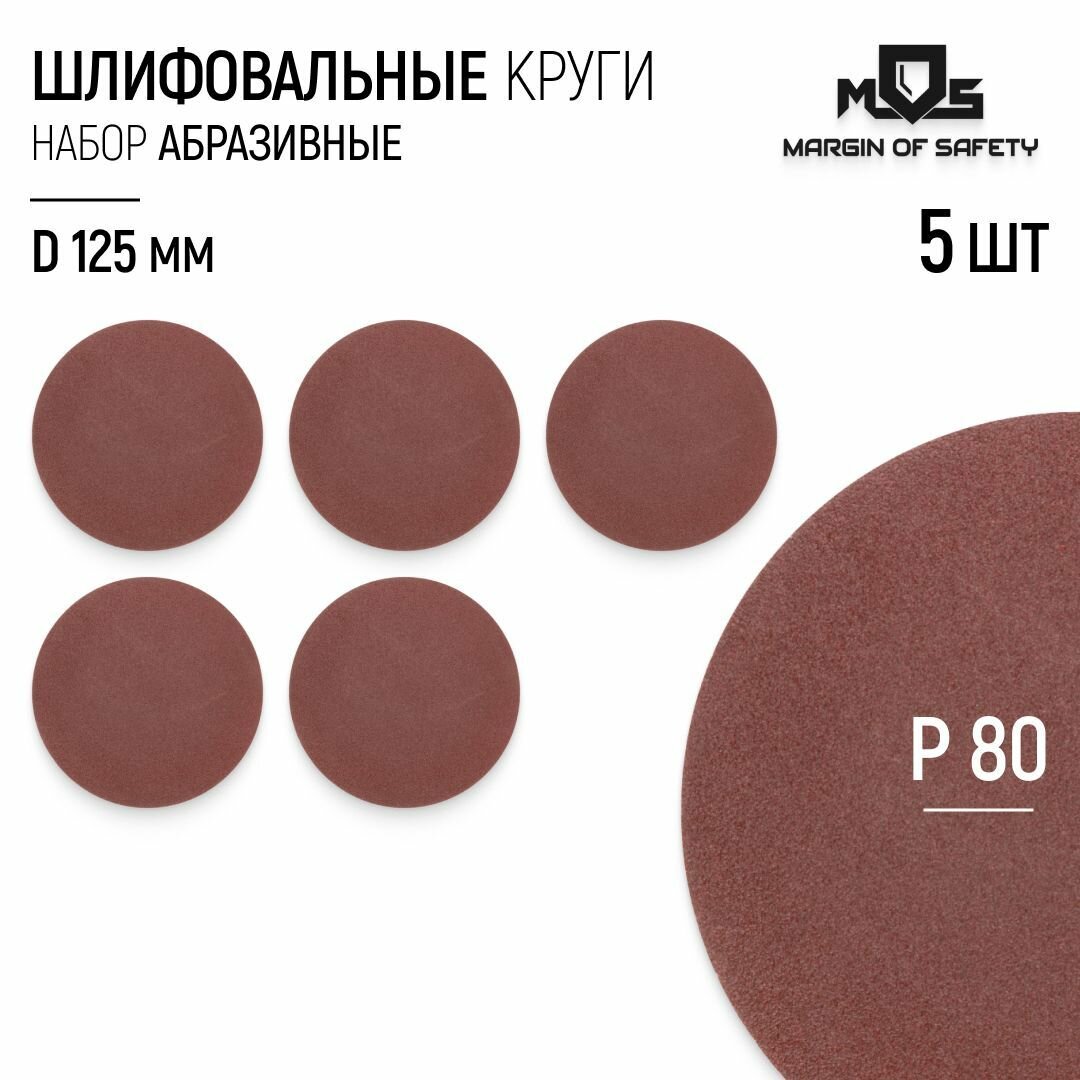 MOS Круги шлифовальные сплошные (липучка), алюминий-оксидные, 125 мм, 5 шт. Р 600 39818М