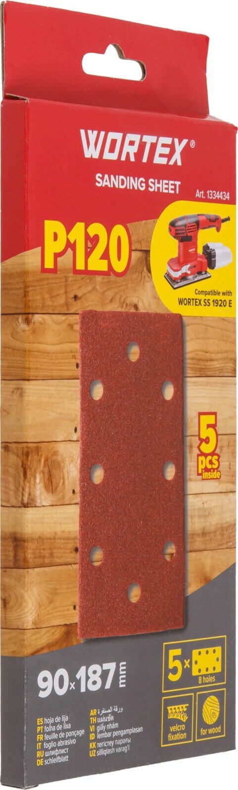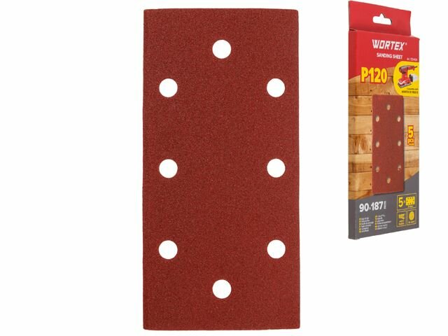 Купить Шлифлист 90х187 мм Р120 д/дерева самосцепл. 8 отв. 5 шт. WORTEX (1334434)