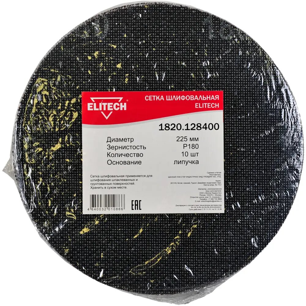 Сетка шлифовальная Elitech 1820.128400, 225 мм. Р180 (1 упак/10шт)