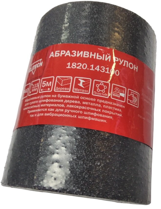 | Дополнительная информация | Рулон абразивный Elitech 1820.143600 P240 115 мм, 5 м |