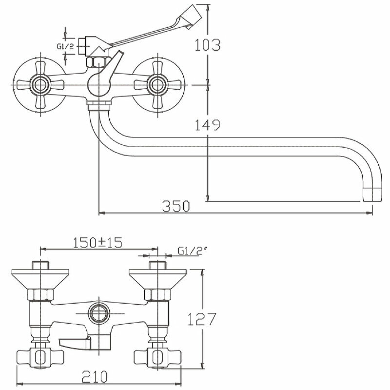Смеситель HB18 д/ванн 2-ручк, керам к/б, хром, длинн пов изл, с акс, Haiba(Китай), арт HB2618