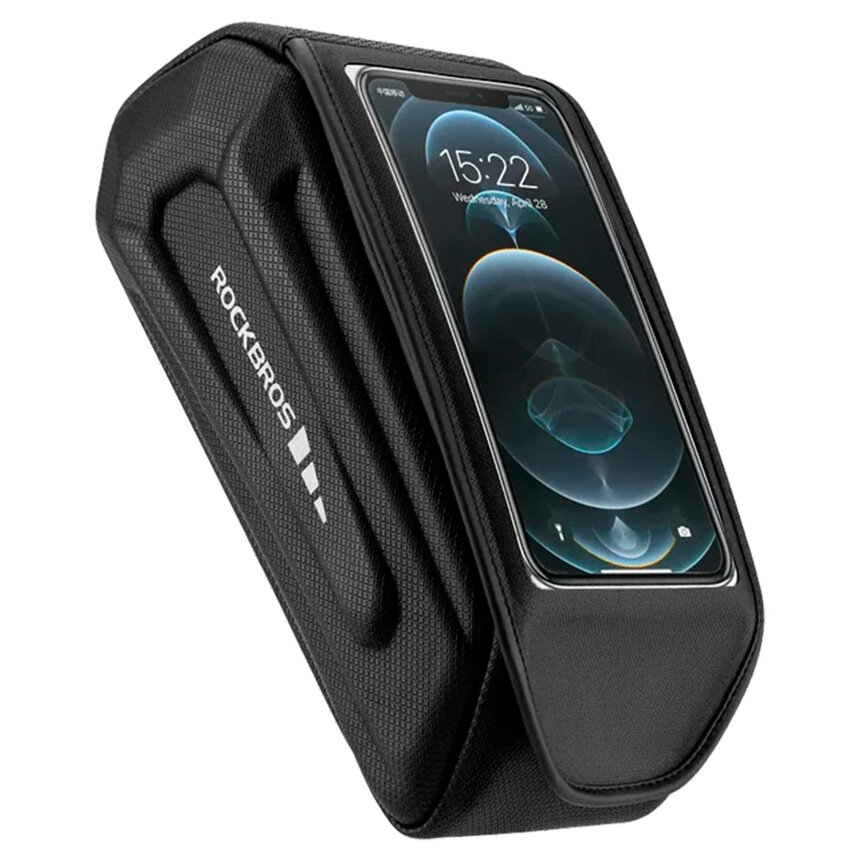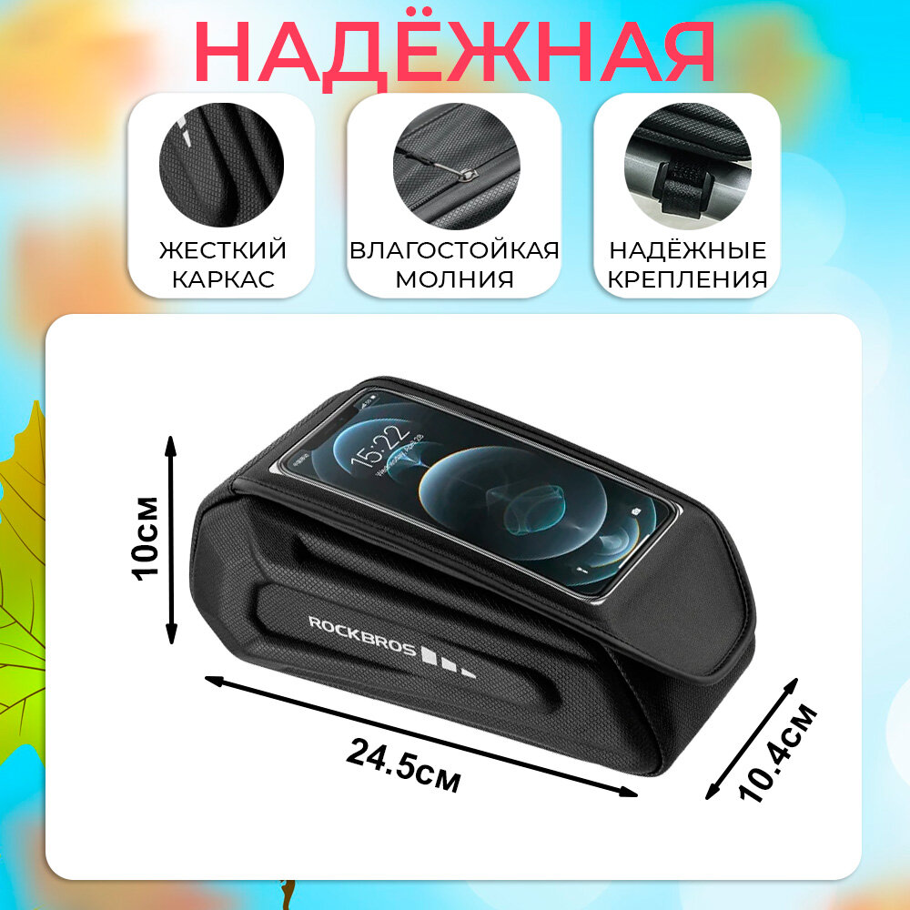 Сумка для велосипеда на раму жесткая 24.5x10.4x10см с чехлом для смартфона ROCKBROS черная интересное: