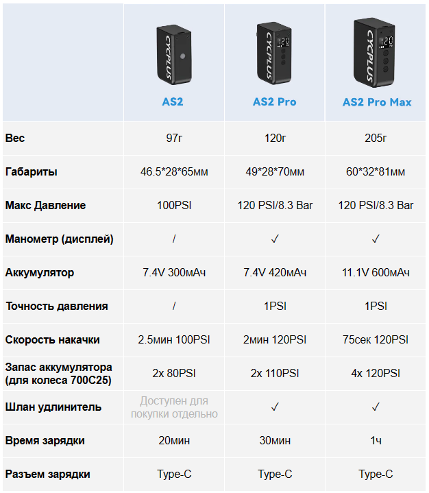 Портативный насос Cycplus CUBE AS2 PRO (аккумулятор 420мАч, 120PSI, вес 120 гр) интересное: