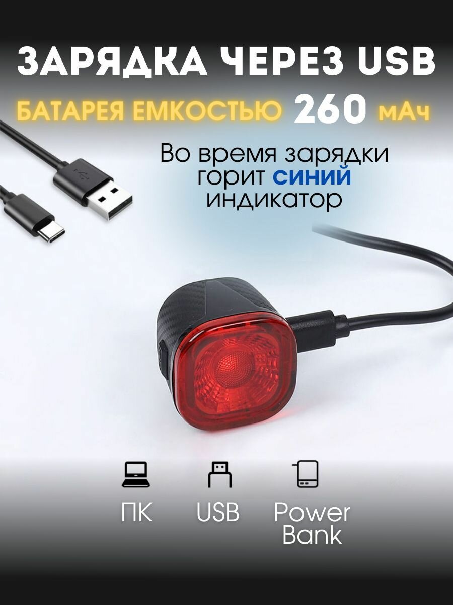 Купить Фонарь задний велосипедный с зарядкой от USB и защитой от воды
