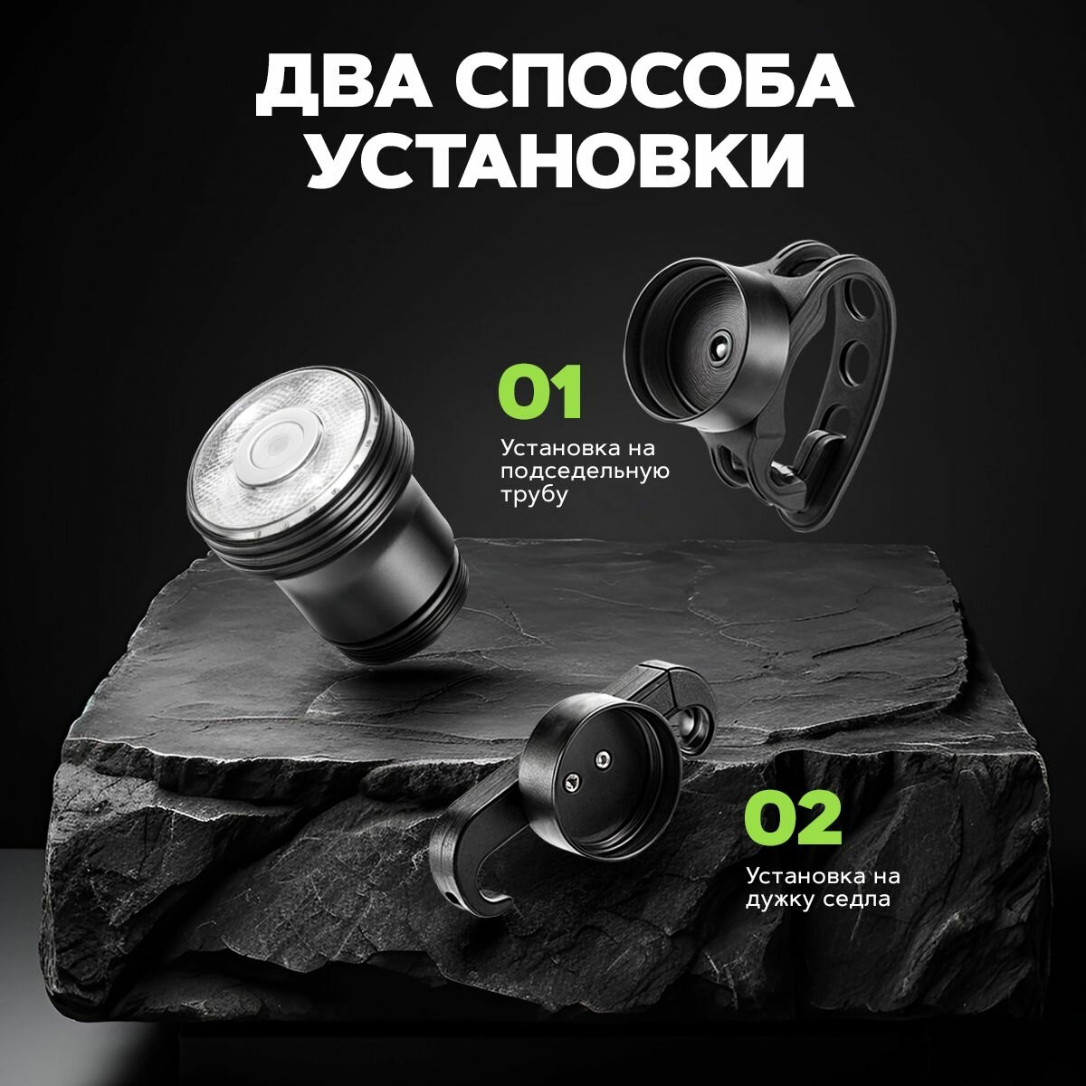 Стоп-сигнал (в сборе) велосипедный (универсальный) (2 RED LED, solar energy, черный) "GJCT"