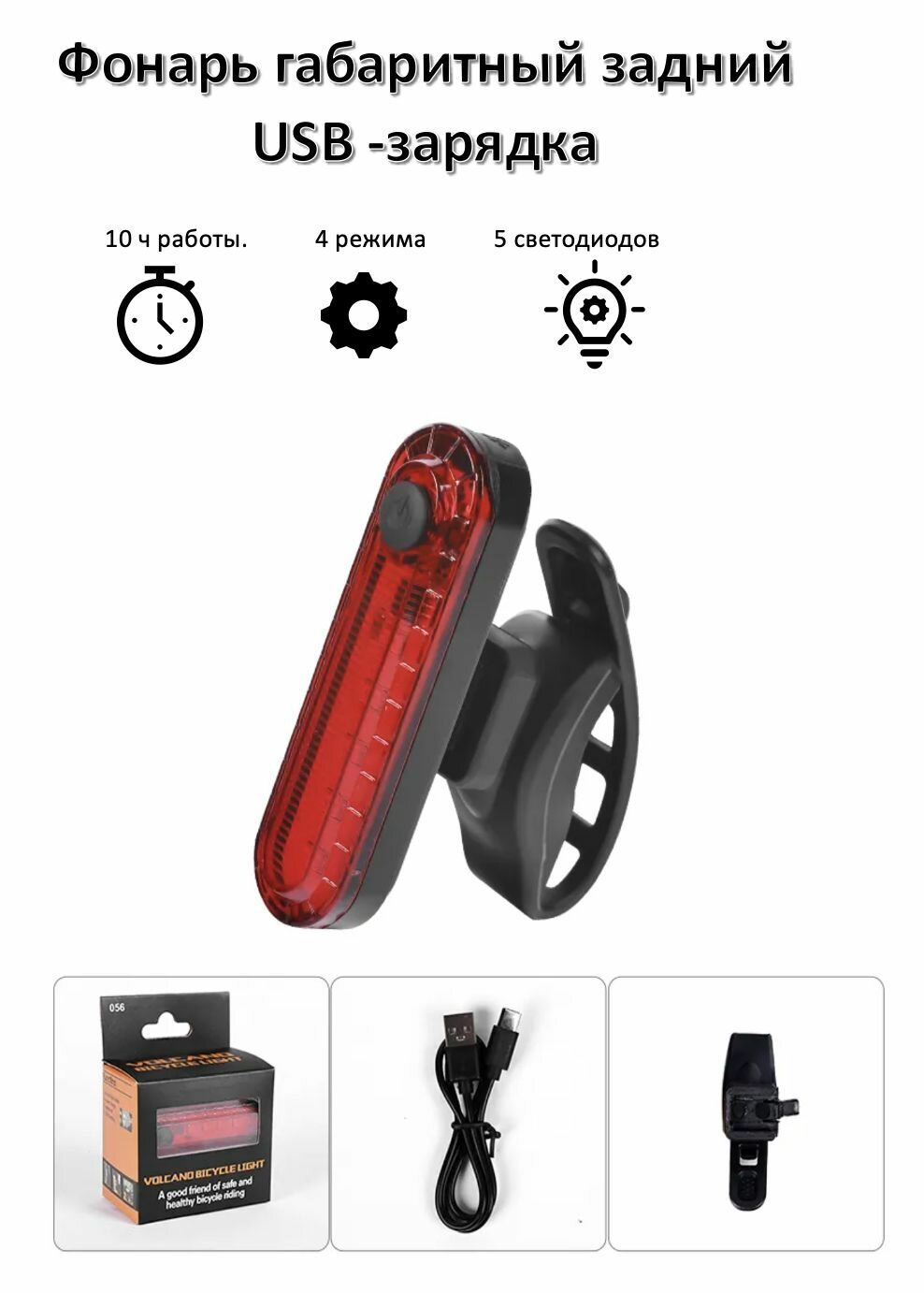 Велосипедный фонарь задний, зарядка USB, 4 режима, красный интересное: