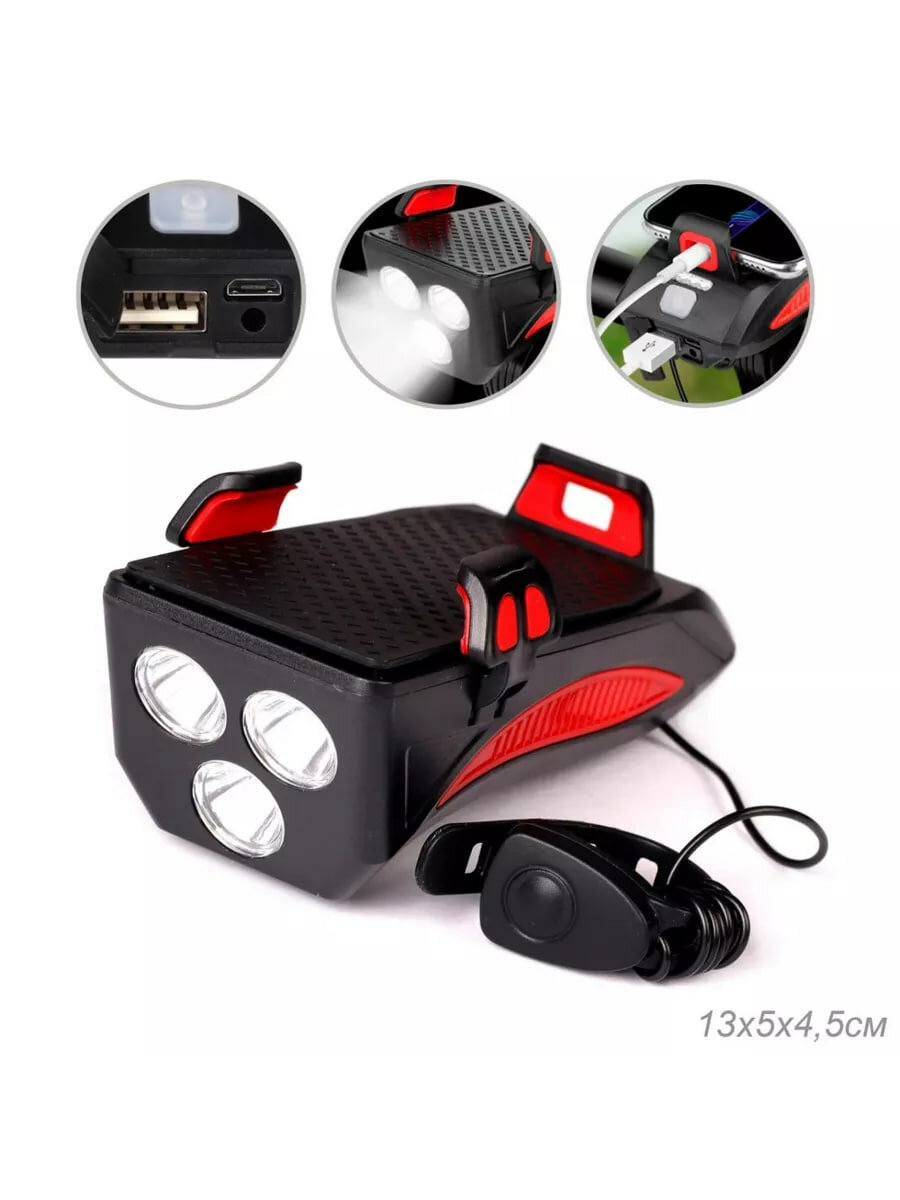 Купить Велофонарь 4в1, кронштейн для телефона, гудок, зарядка для телефона, фонарь от Shark-Shop