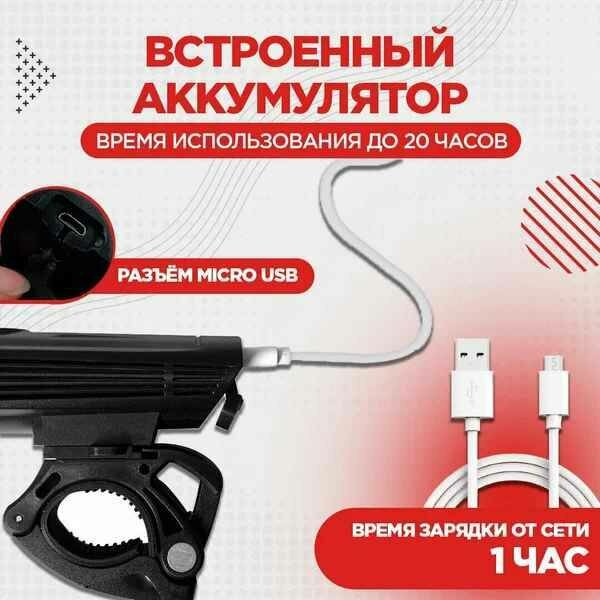 Сверхъяркий LED фонарик для велосипеда и самоката, встроенный аккумулятор, фара передняя от Shark-Shop интересное: