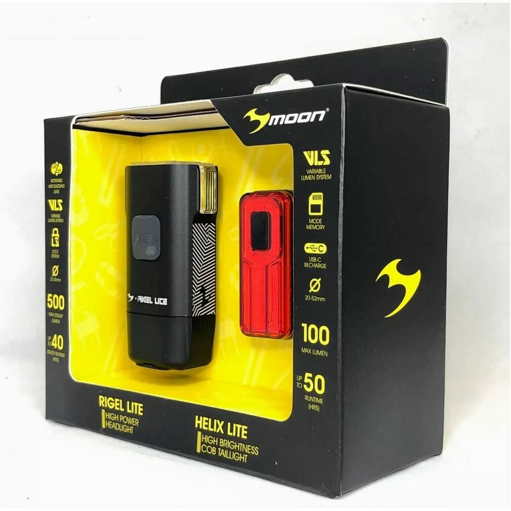 Купить Комплект фонарей Moon Rigel Lite и Helix Lite, 500/100 люмен, аккумулятор, зарядка USB-C, для велосипеда, самоката