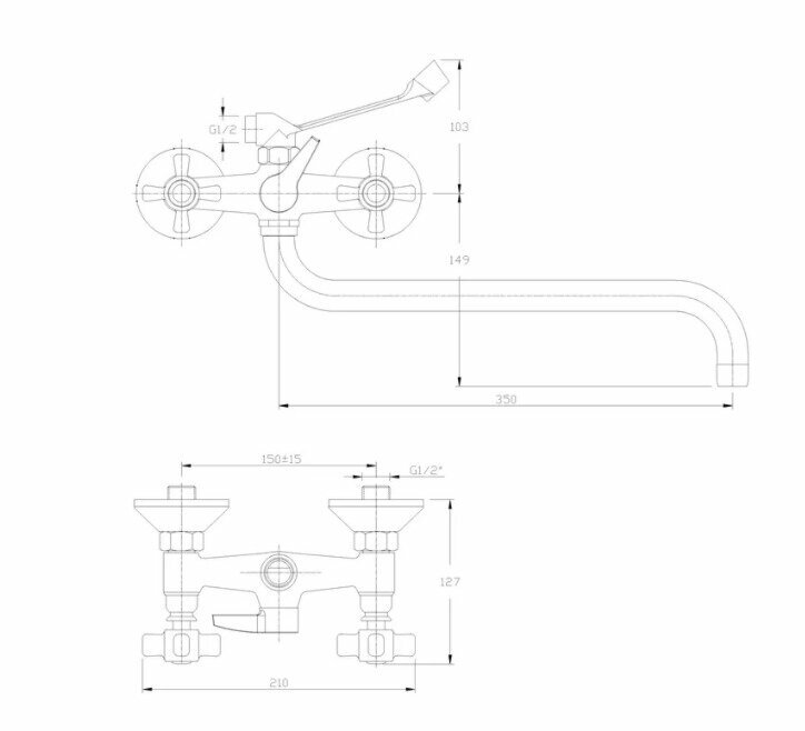 Смеситель для ванны Haiba HB18 универсальный, хром (HB2618)