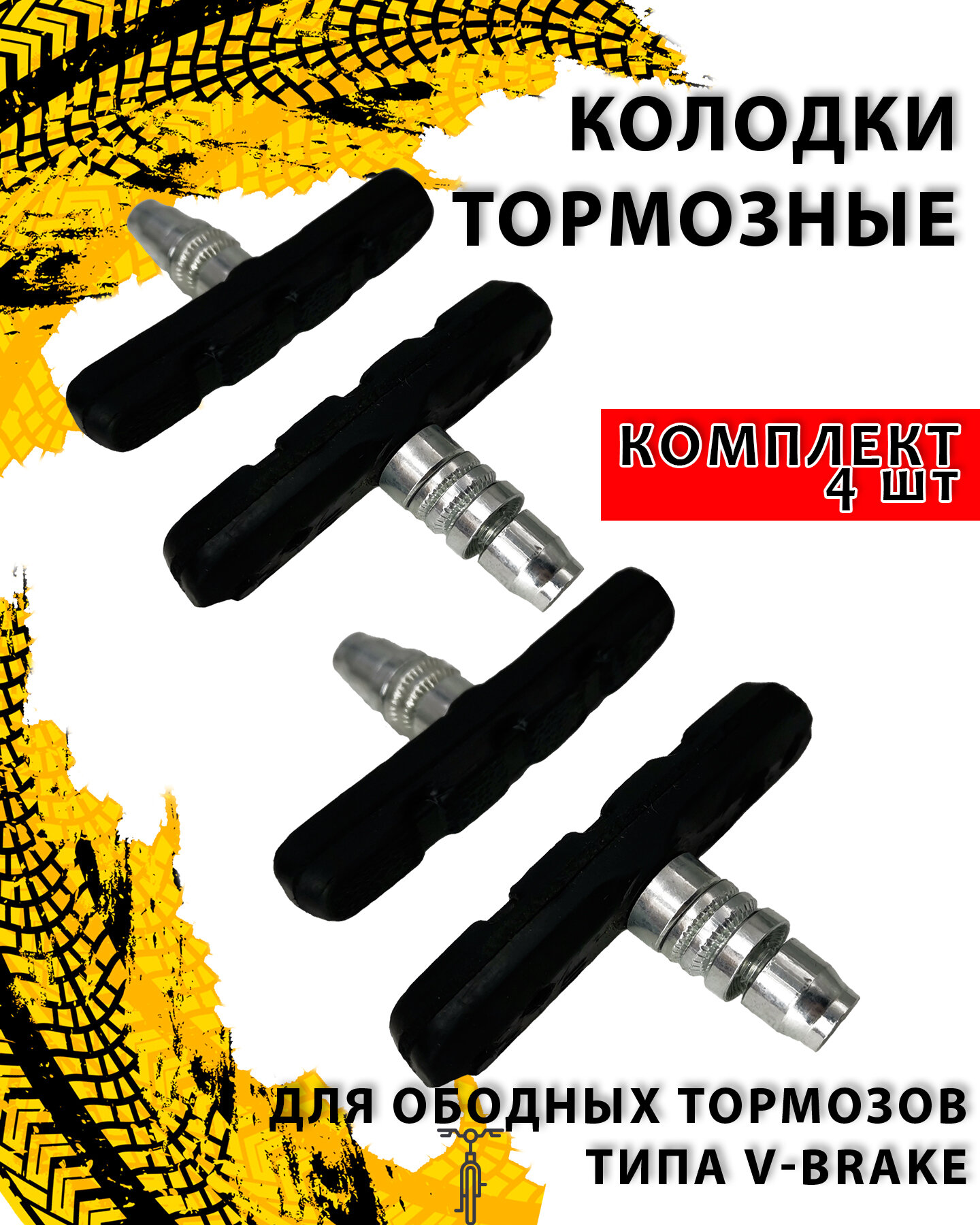 Колодки тормозные для ободных тормозов типа V-Brake 4 шт. (2 пары) (70 мм), металл, резина интересное: