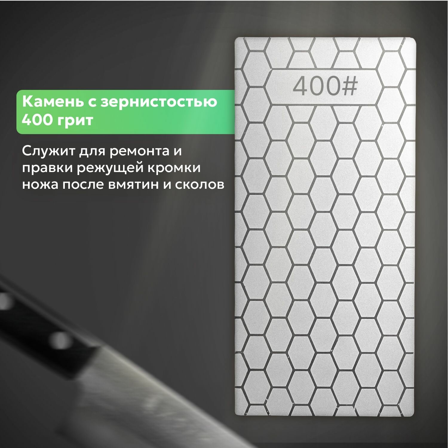 Kimatsugi / Алмазный точильный камень для ножей. Зернистость ножеточки 400#. Универсальная точилка - брусок на нескользящей основе