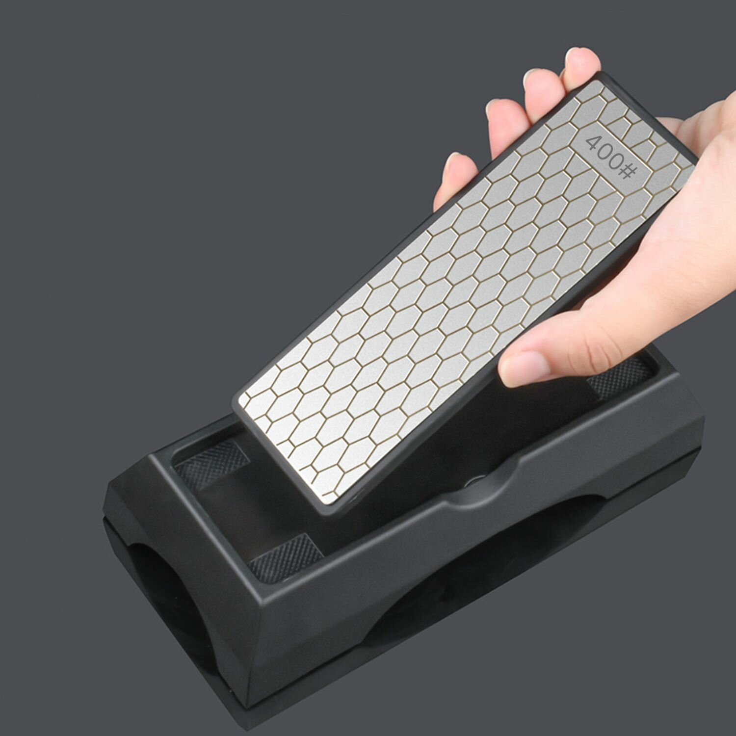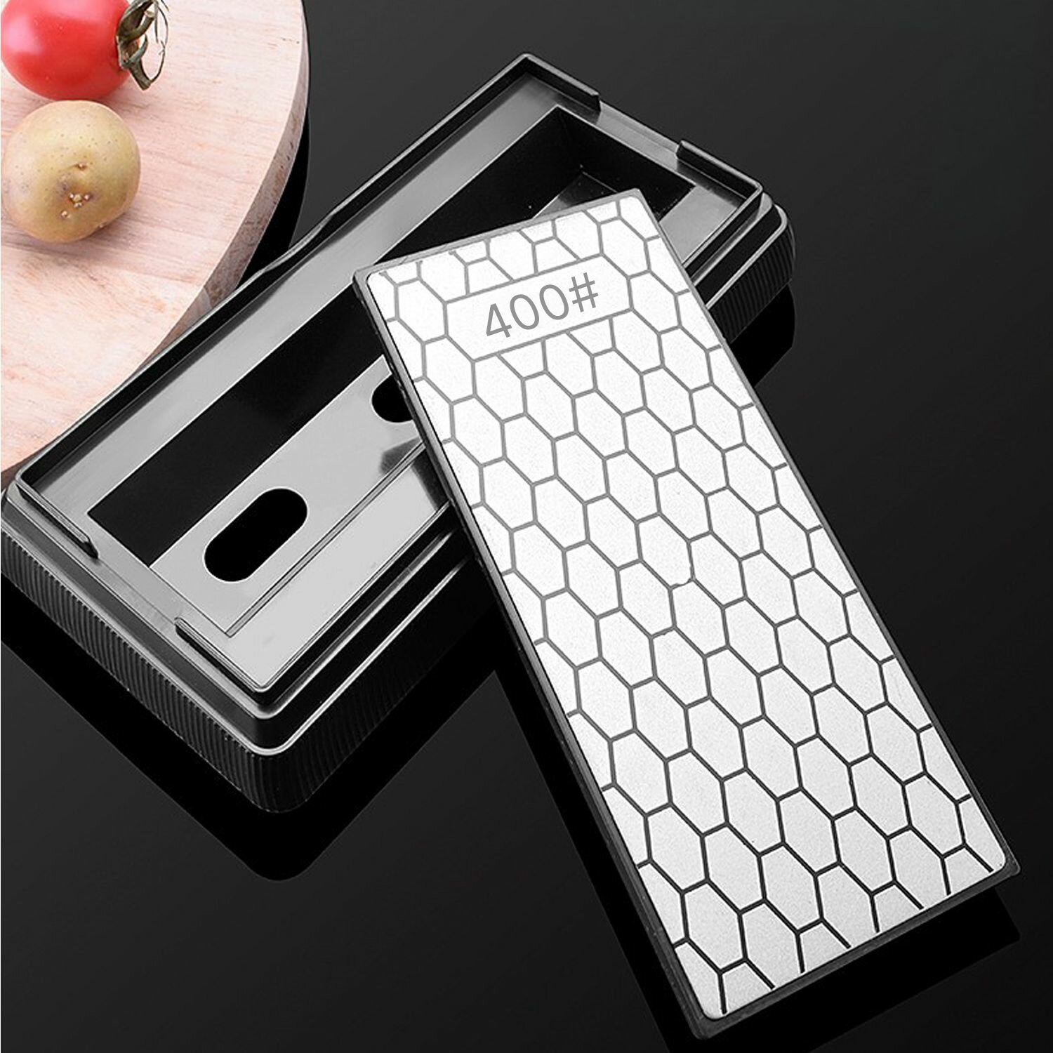 Купить Kimatsugi / Алмазный точильный камень для ножей двухсторонний. Зернистость ножеточки 400# / 1000#. Универсальная точилка - брусок на пластиковой подставке с крышкой