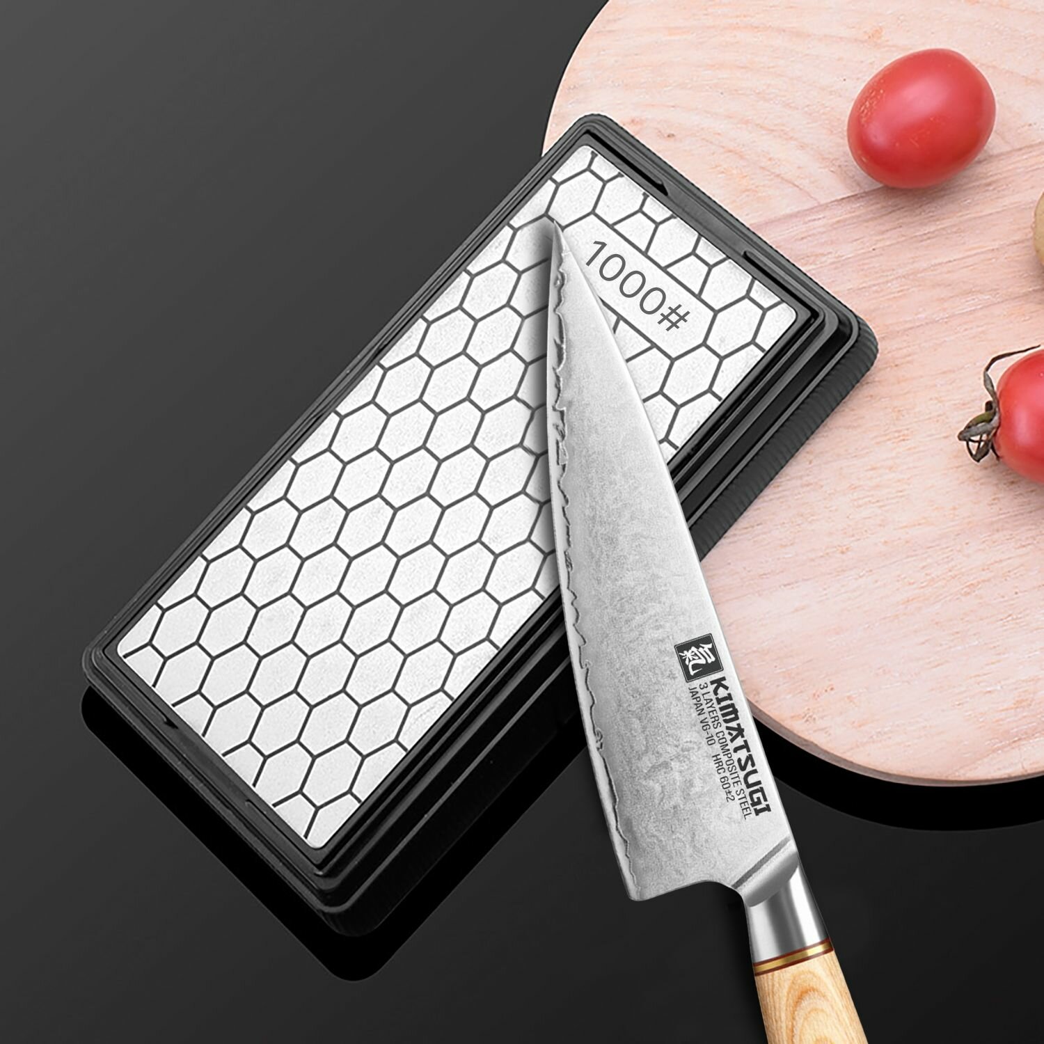 Kimatsugi / Алмазный точильный камень для ножей. Зернистость ножеточки 1000#. Универсальная точилка - брусок на нескользящей основе