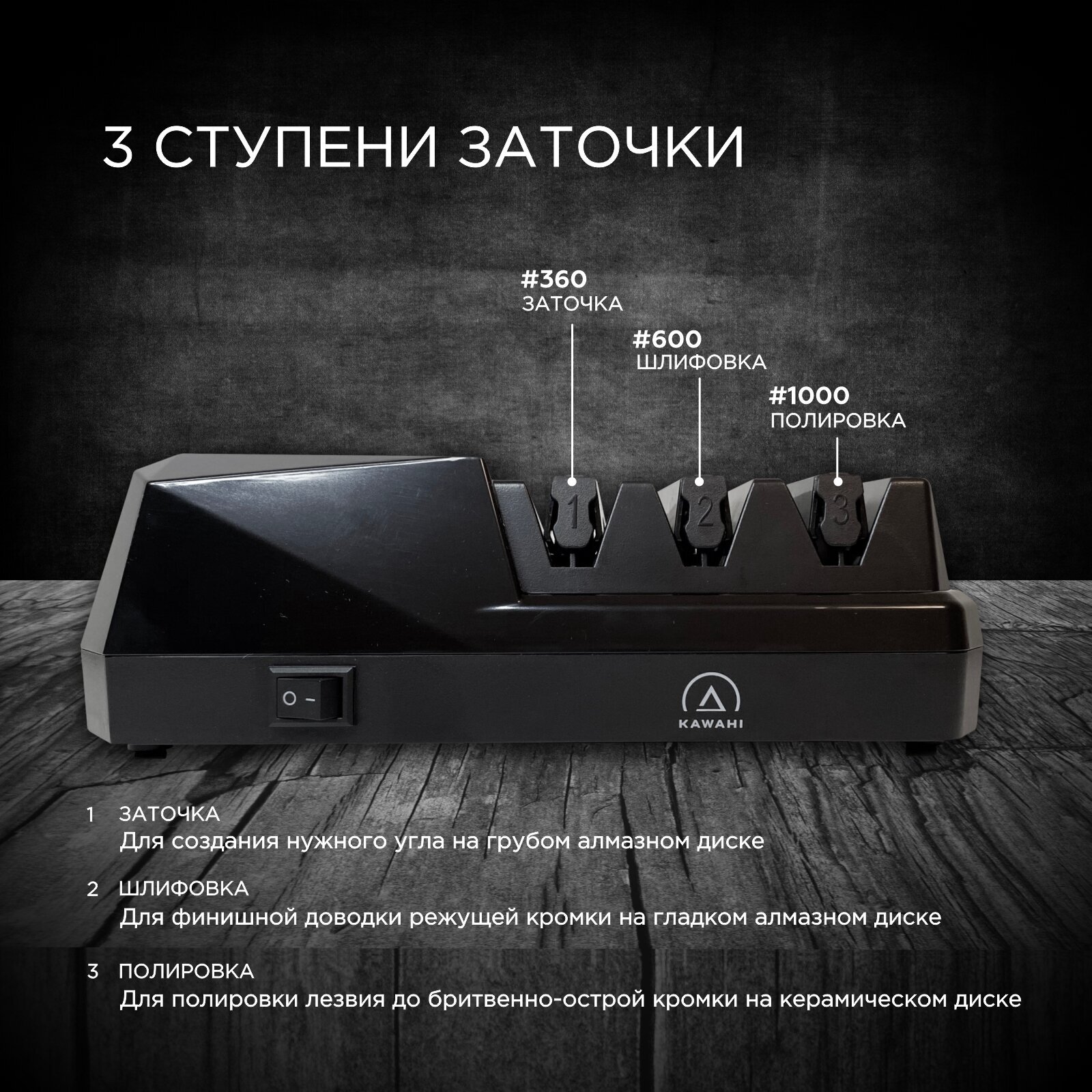 Точилка / электроточилка / ножеточка для правки заточки кухонных ножей KAWAHI ES-004 интересное: