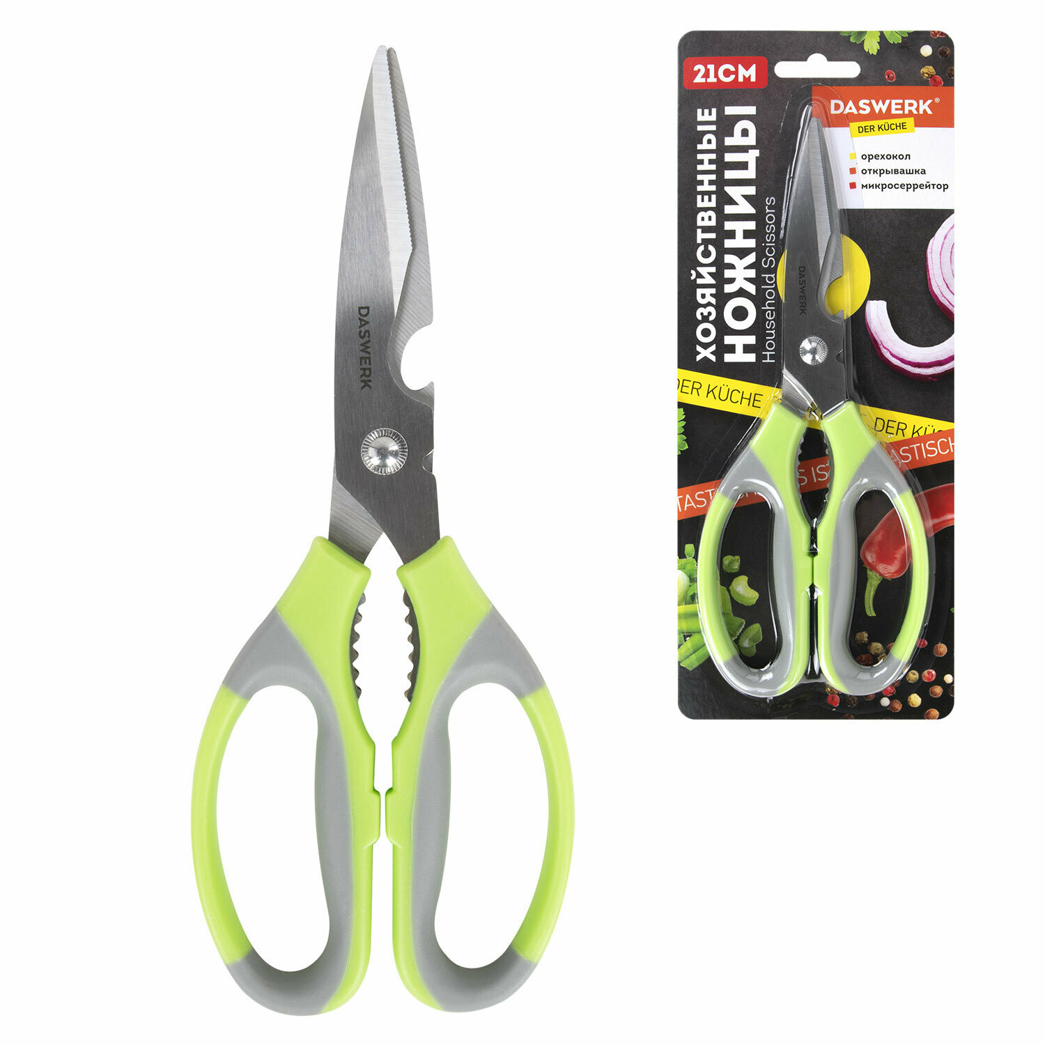 Ножницы кухонные Daswerk, 210 мм, с орехоколом, открывашкой, зазубренным лезвием, 608903 интересное: