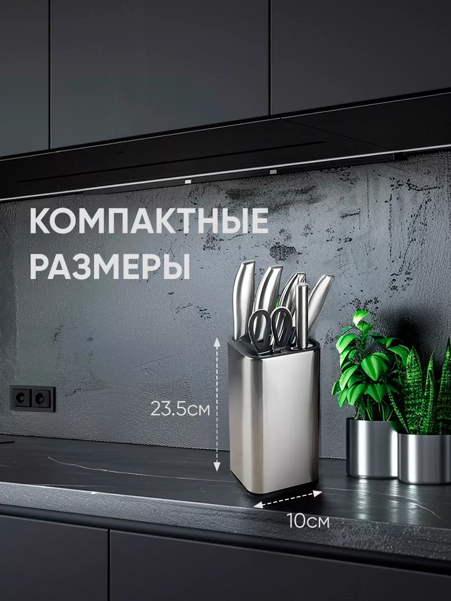 | Дополнительная информация | подставка для ножей, подставка для кухонных ножей, органайзер для кухни, подставка для столовых приборов, подставка для ножей кухонных, подставка для кухонных принадлежностей, держатель для ножей, подставка для кухонных приборов, подставка под ножи, нержавеющая сталь |