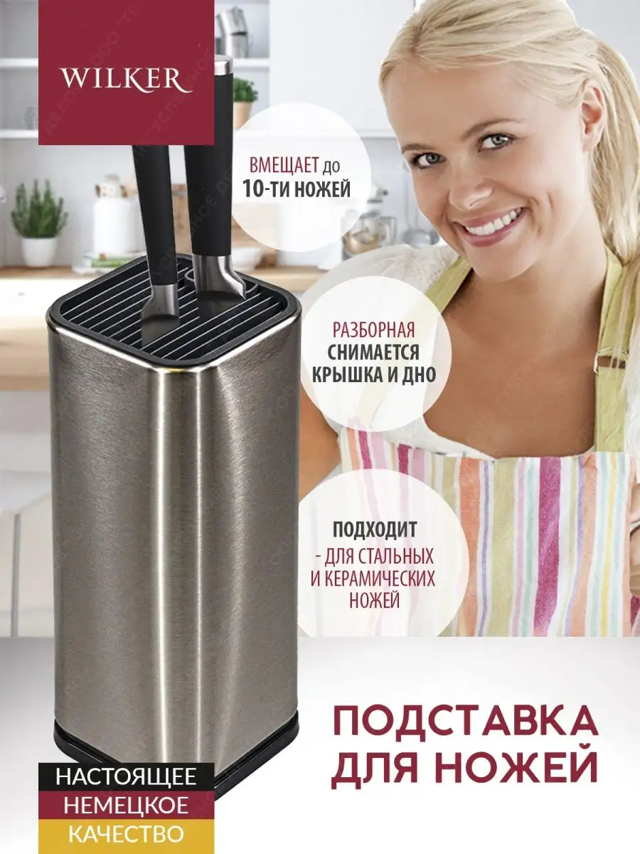 Wilker Подставка для ножей 23х10 см квадратная, серебристый интересное: